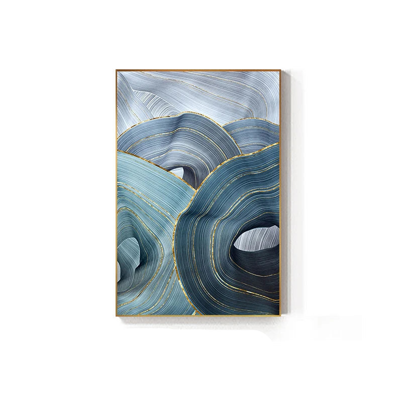 Abstract Silver Canvas Painting Golden Blue Poster Print Modern Paintings Wall Art Pictures for Living Room Bedroom Home Decor