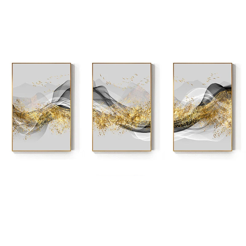 Modern Abstract Auspicious Flowing Golden Mountain Landscape Wall Art Fine Art Canvas Prints - Modern Art For Living Room Dining Room Light Luxury Home Decor